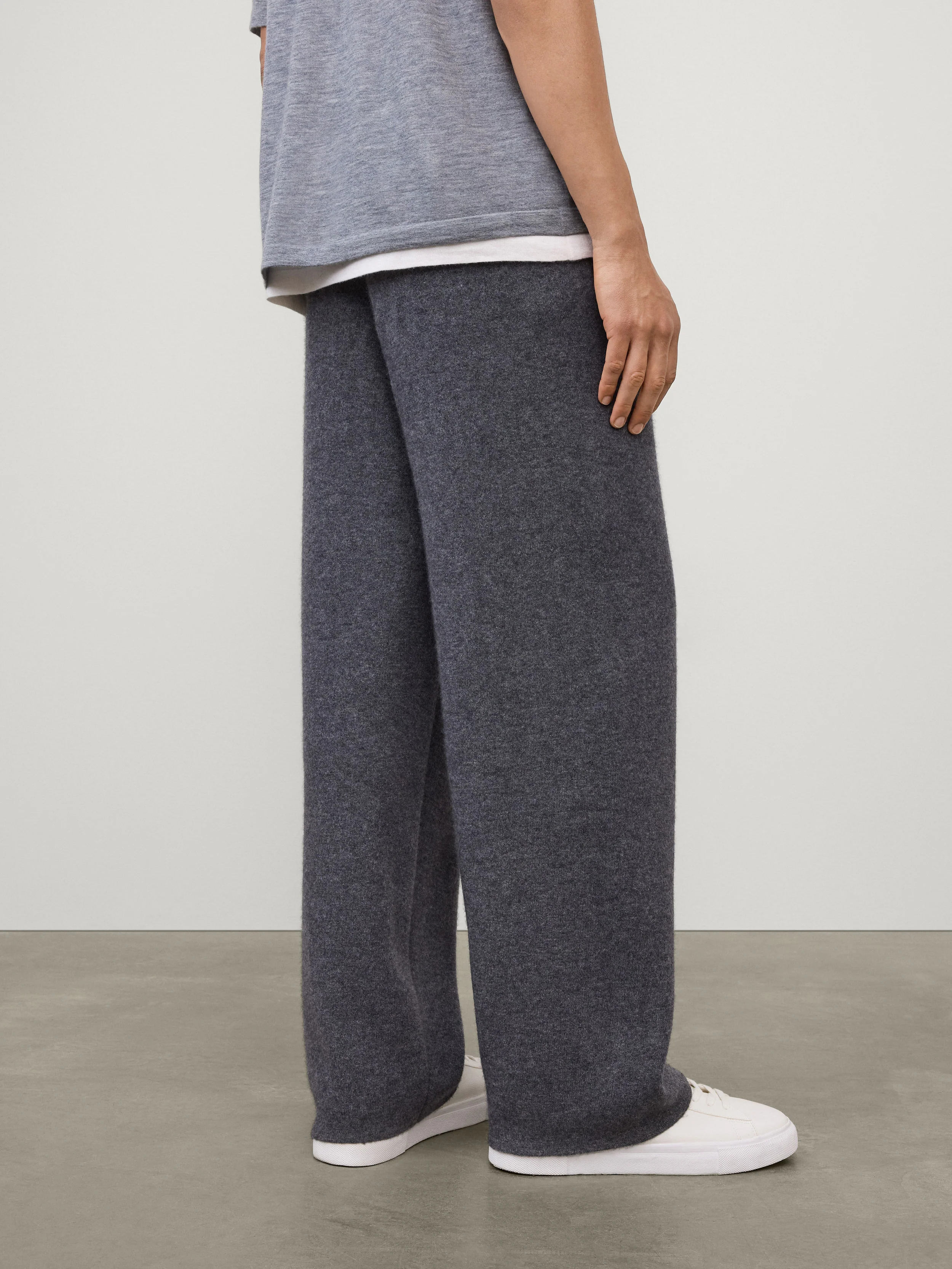 A tailoring-inspired trouser, the Parker trousers are knitted in our signature double face cashmere for shape and structure. The regular fit, relaxed silhouette features an elasticated waistband secured with a concealed drawstring, a mock fly, side pockets and full-length legs.